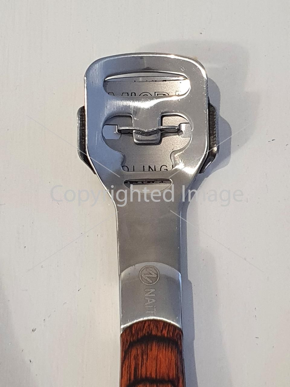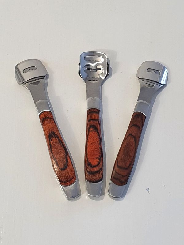 Якісний інструмент, виготовлений з нержавіючої сталі, на ручці декоративне покриття червоне дерево, що забезпечує зручність виконання процедури.