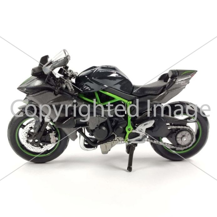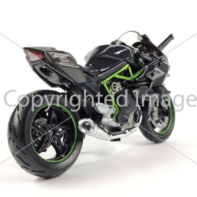 Колекційна модель мотоцикла Kawasaki Ninja H2R — Масштаб 1:18 (Maisto) "Mirror Coated Black" з контрастною яскраво-зеленою рамою (Trellis frame)