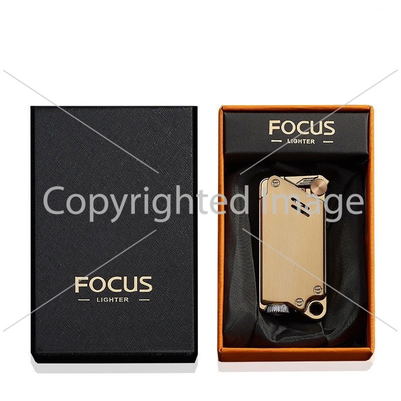 Газова турбо-запальничка FOCUS у стилі Industrial / Steampunk золотиста