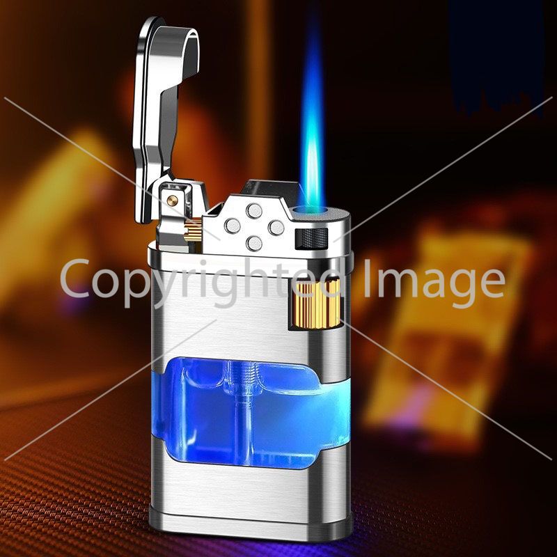 Газова турбо-запальничка з прозорим баком сріблястого кольору