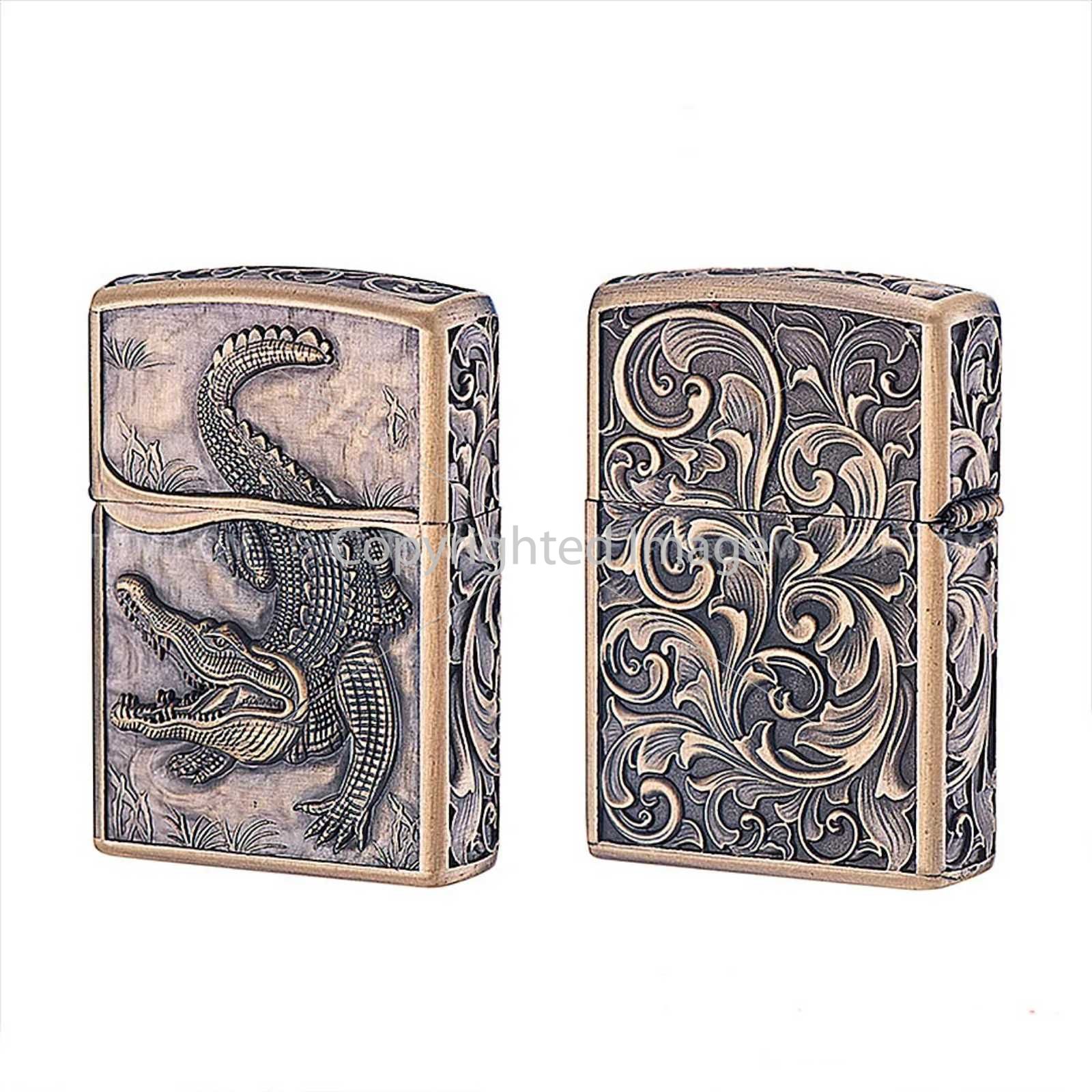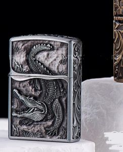 Бензинова запальничка Zorro «Crocodile Antique Copper» Античне срібло