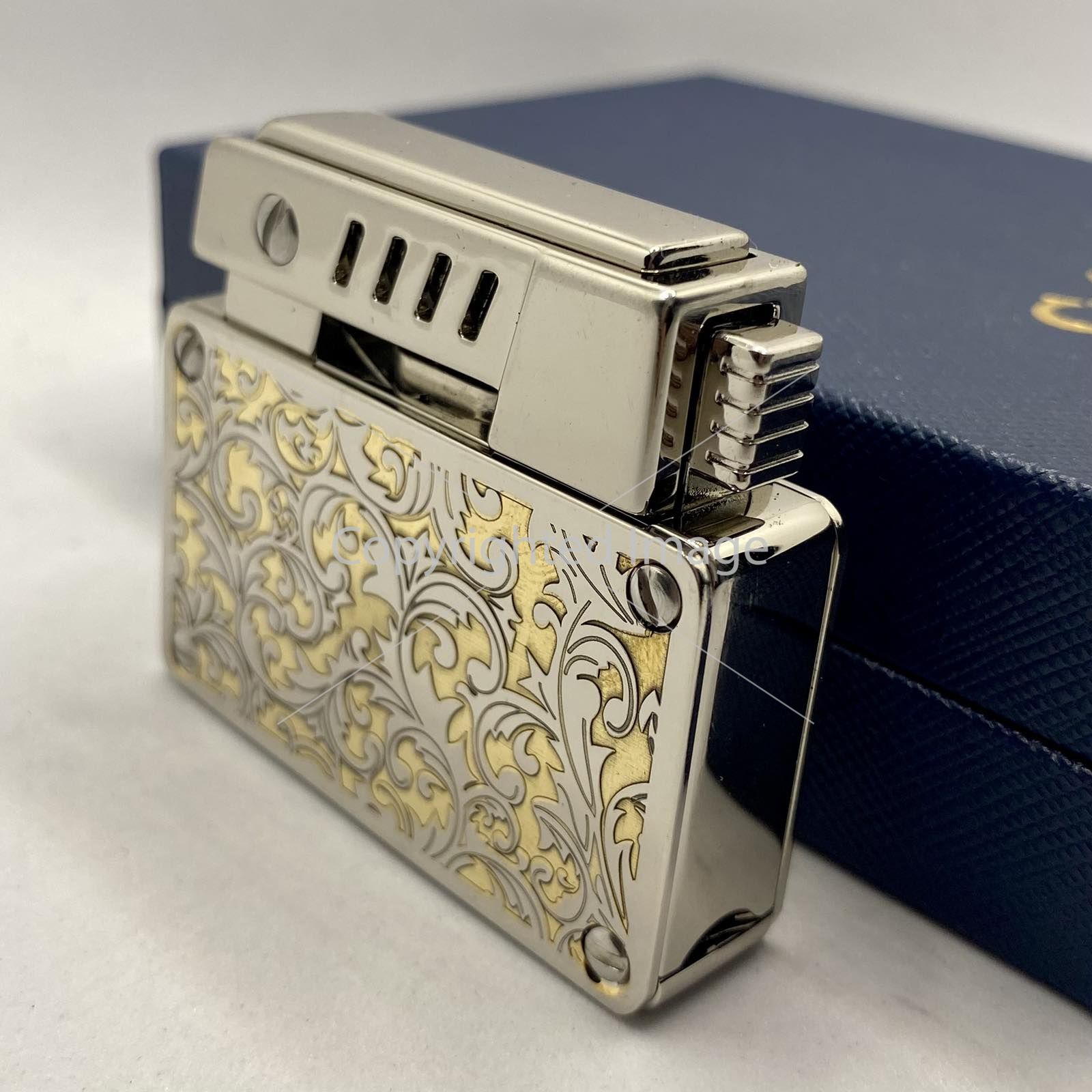 Розкішний Вигляд: Ефектне двоколірне гравіювання на лицьовій панелі (сріблястий метал + золотистий фон) перетворює запальничку на витвір мистецтва.