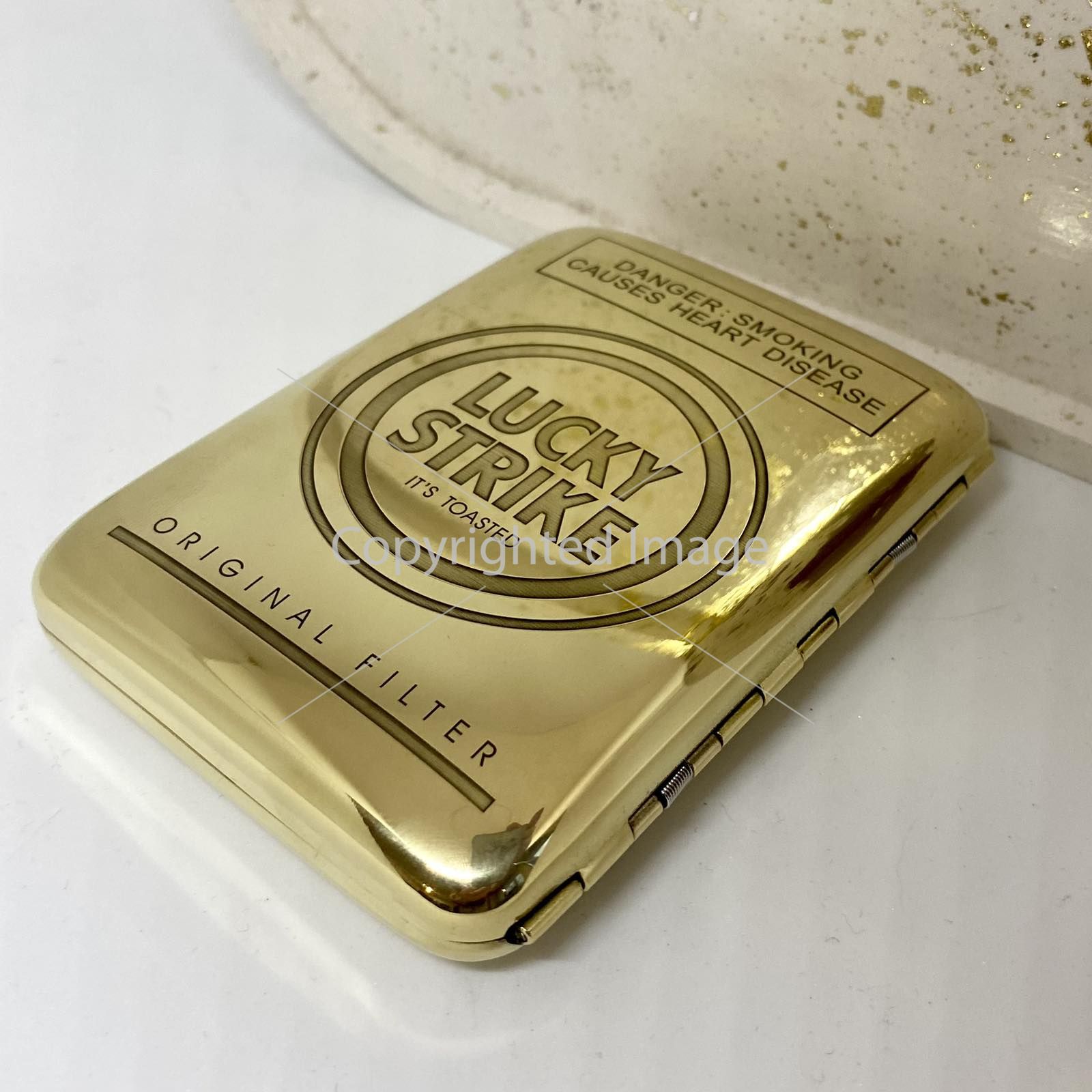 Відчуйте атмосферу золотого віку тютюнової культури. Цей портсигар — не просто коробка, це реверанс у бік легендарної епохи. Фірмове гасло "It’s Toasted" та класичне компонування елементів роблять його справжньою знахідкою для колекціонерів та естетів.