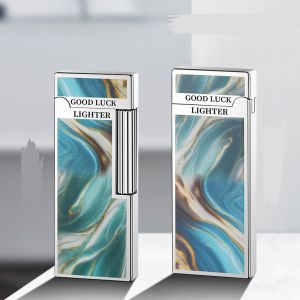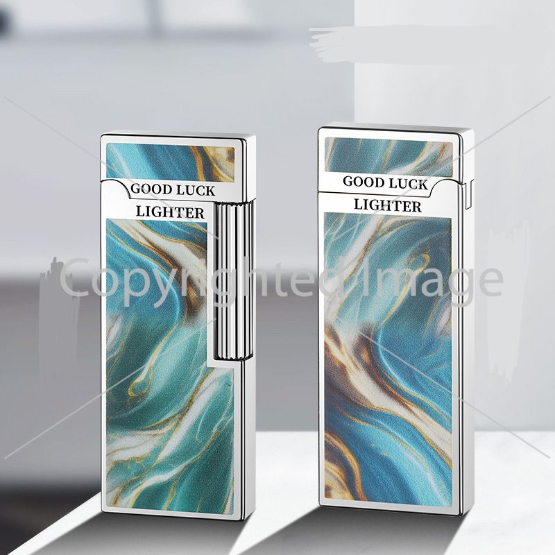 Елегантна Газова Запальничка HYMRS "Good Luck" — Бірюзово золотий Мармур та Хром