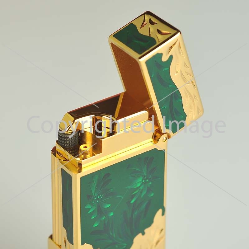 Чому вона особлива? Дизайн моделі надихнутий вікторіанською епохою: поєднання золотого напилення та глибокого смарагдового відтінку створює образ справжньої коштовності. Витончене гравіювання та напівпрозорі вставки, що нагадують натуральний малахiт, роблять цю запальничку центральним елементом вашого образу.