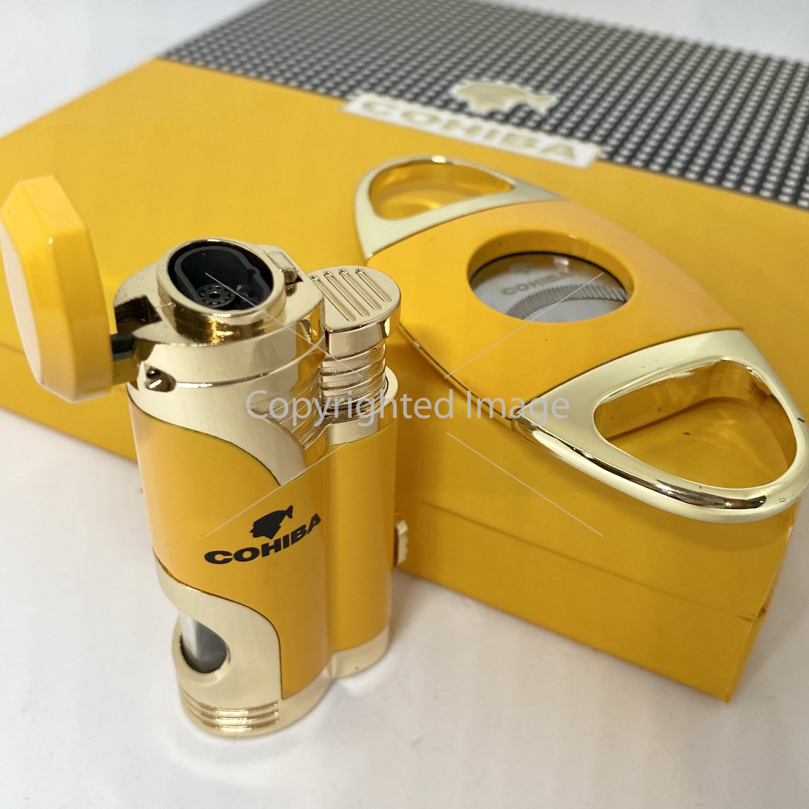 Турбо-запальничка Cohiba та гільйотина жовто-золотистого кольору у наборі