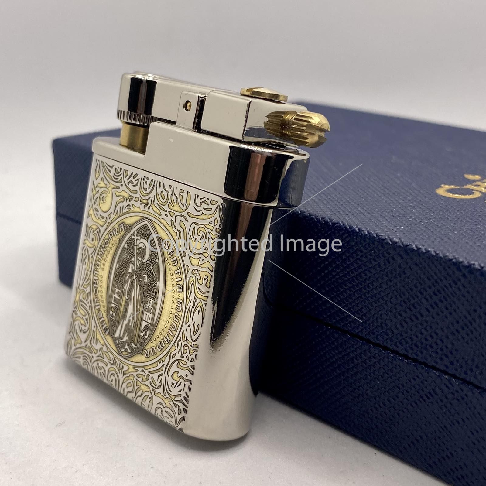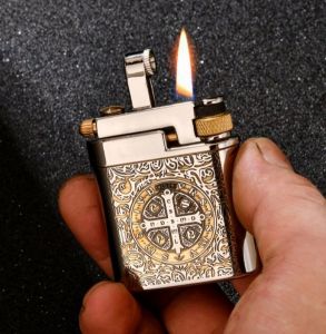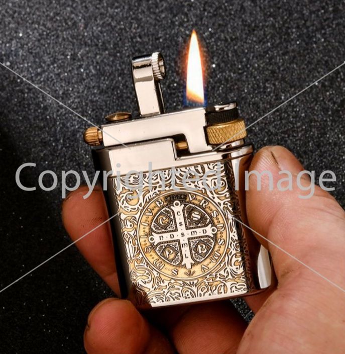 Центральний елемент – Хрест Святого Бенедикта. Кожна літера, вигравірувана на медальйоні (наприклад, V.R.S. N.S.M.V.), є частиною потужної молитви-екзорцизму. Ця запальничка слугує невидимим оберегом, який завжди з вами.