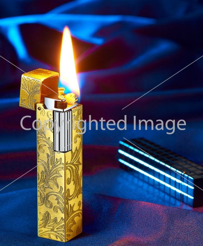 Колір Вогню та Золота: Неймовірно гарний контраст яскраво-жовтого полум'я та матового, насиченого золота корпусу. Запальничка світиться розкішшю навіть у напівтемряві.