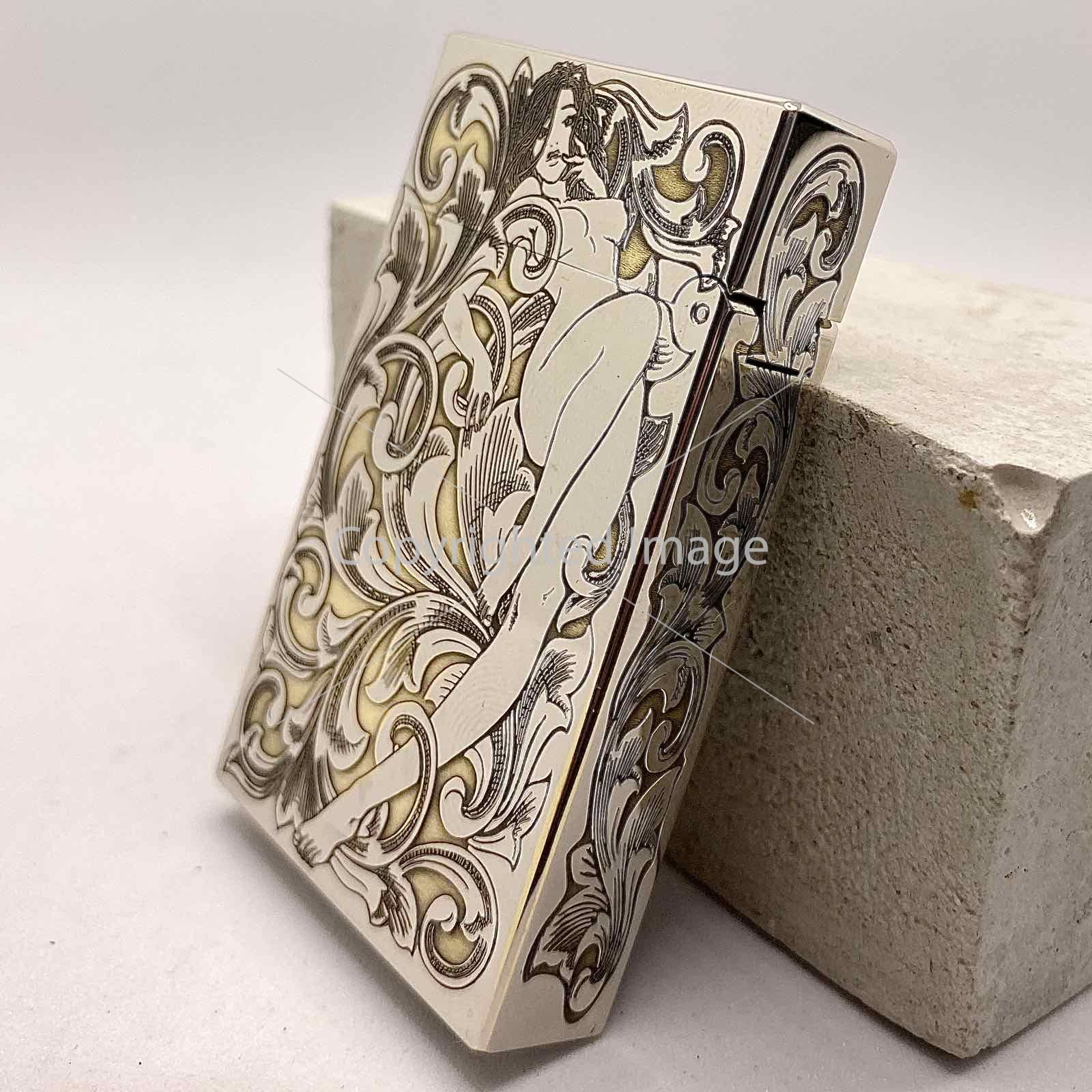 Розкішне Художнє Гравірування: Корпус прикрашений глибоким, багатошаровим гравіюванням, яке імітує витончені барокові візерунки (scrollwork). Сріблястий метал ідеально контрастує з акцентами під старовинне золото, створюючи тривимірний, візуально багатий ефект.