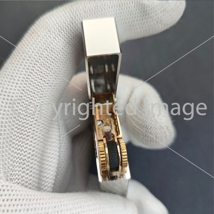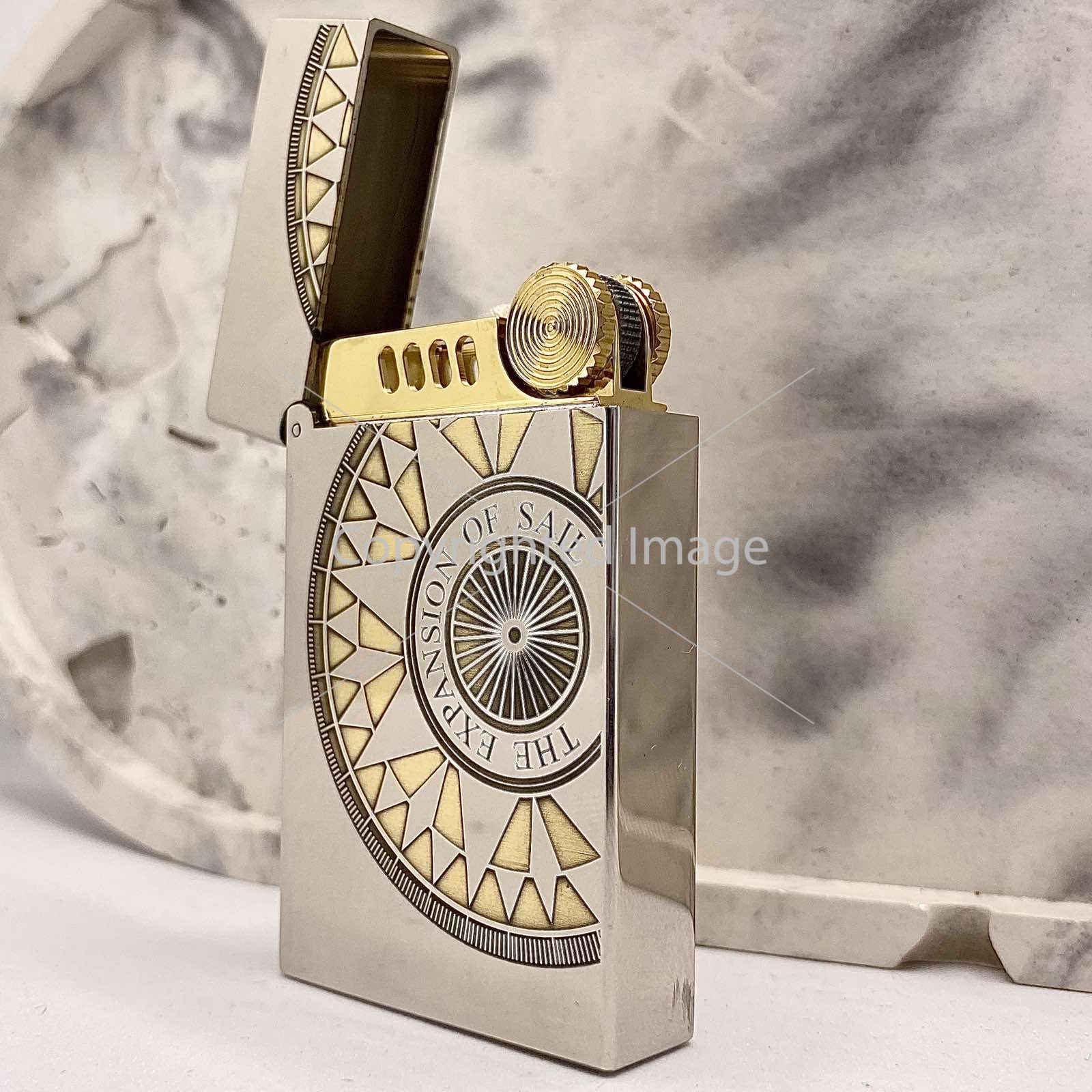 Золотисті Акценти: Візерунок має виразні золотисті вставки (можливо, латунне або емалеве покриття), що контрастують із сріблястим корпусом і надають аксесуару преміального вигляду.