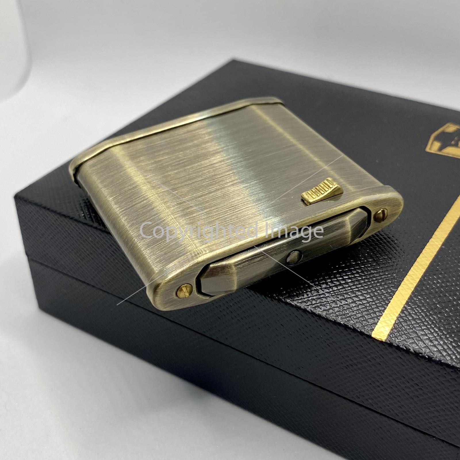 Покриття "Антична Латунь": Завдяки брашованій (сатинованій) обробці, метал набуває глибокого, матового відтінку старого золота або вінтажної бронзи. Цей ефект вікової патини робить кожну запальничку унікальною та солідною. Таке покриття також практичне, оскільки ефективно маскує дрібні подряпини та відбитки пальців.