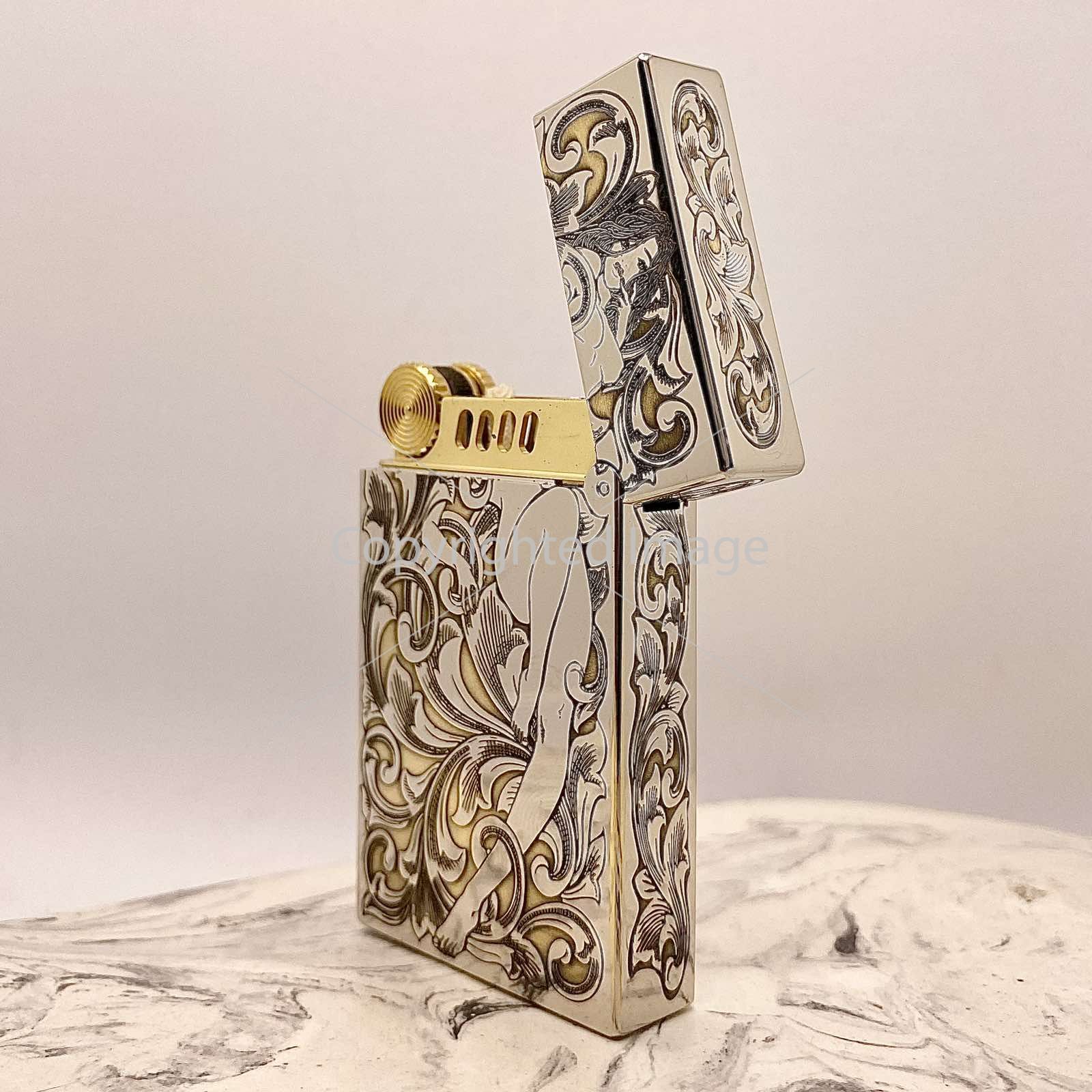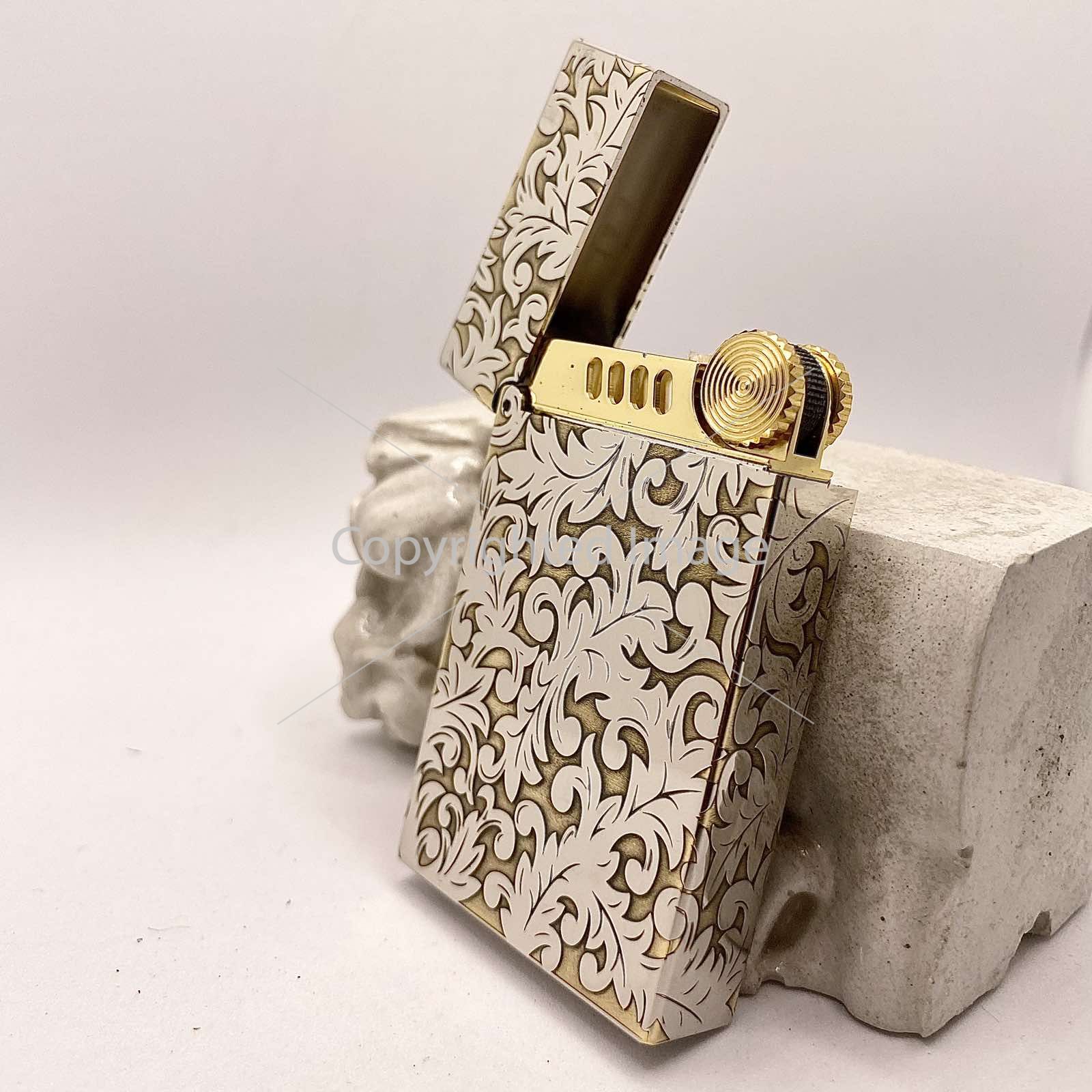 Глибоке Рельєфне Гравіювання: Корпус запальнички повністю вкритий складним, деталізованим візерунком у стилі бароко або флористичного орнаменту. Завдяки техніці глибокого гравіювання візерунок відчувається на дотик, створюючи ефект антикварного виробу.