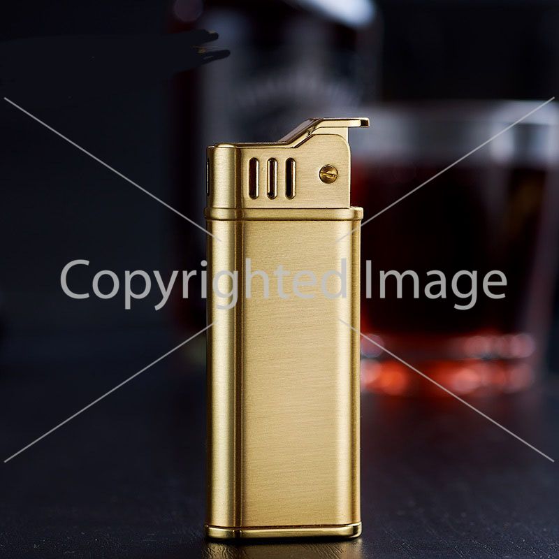 Колір Розкоші: Елегантний золотистий/латунний відтінок надає запальничці вигляду дорогого вінтажного аксесуара. Вона чудово виглядає на тлі шкіряних виробів або дерев'яного столу, як на представленому фото.