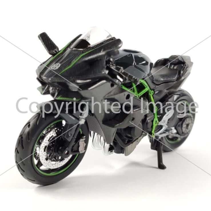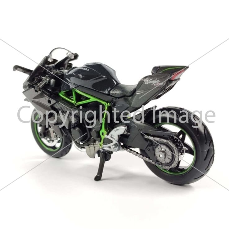 Колекційна модель мотоцикла Kawasaki Ninja H2R — Масштаб 1:18 (Maisto) "Mirror Coated Black" з контрастною яскраво-зеленою рамою (Trellis frame)