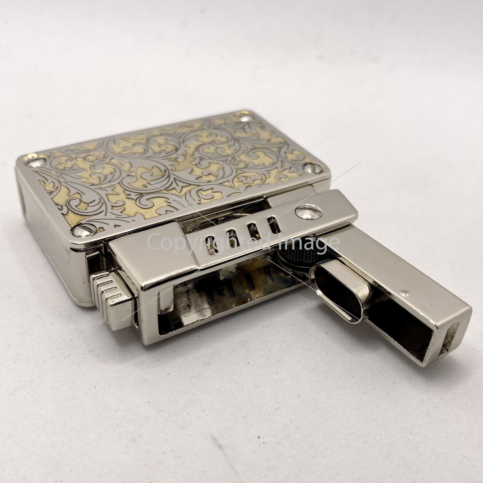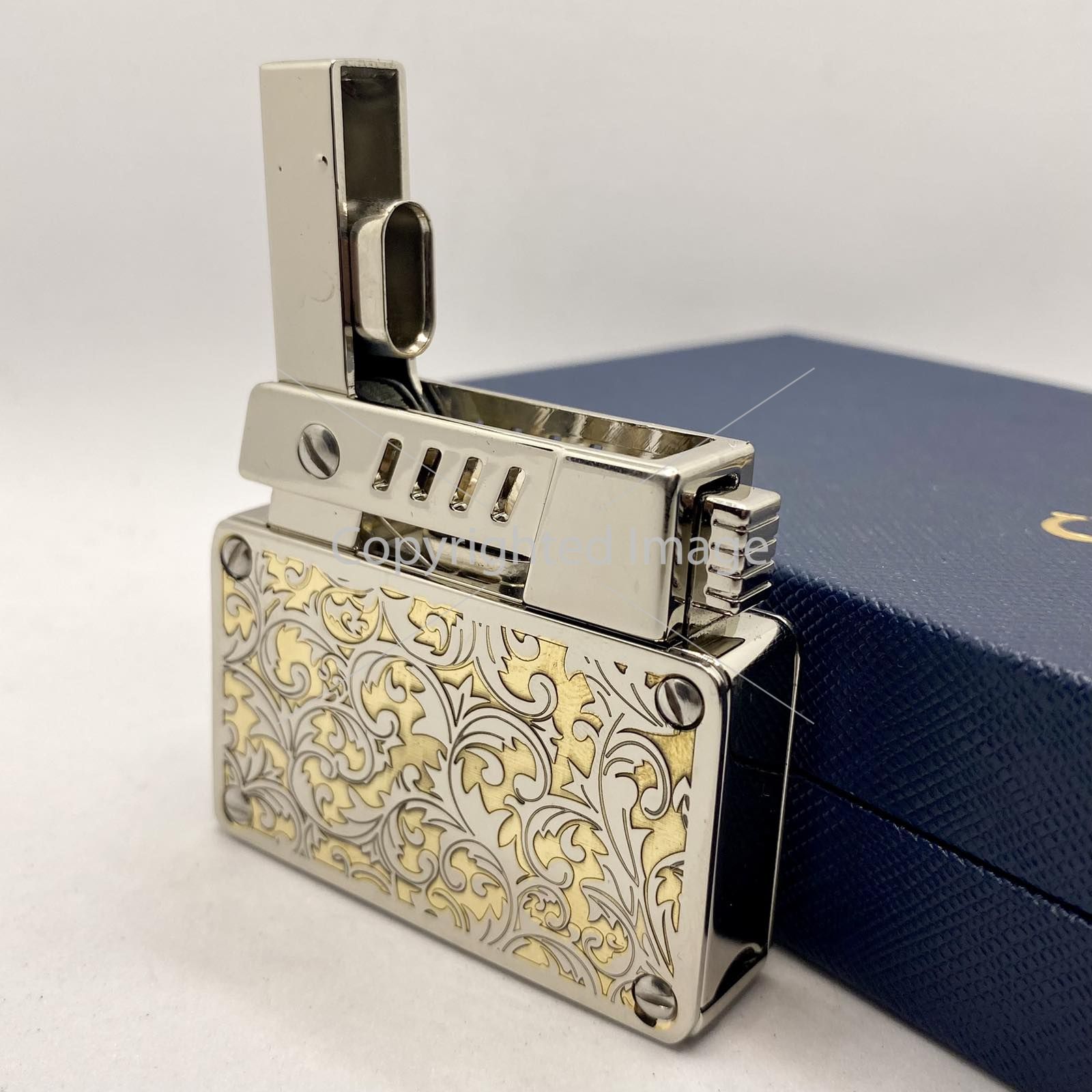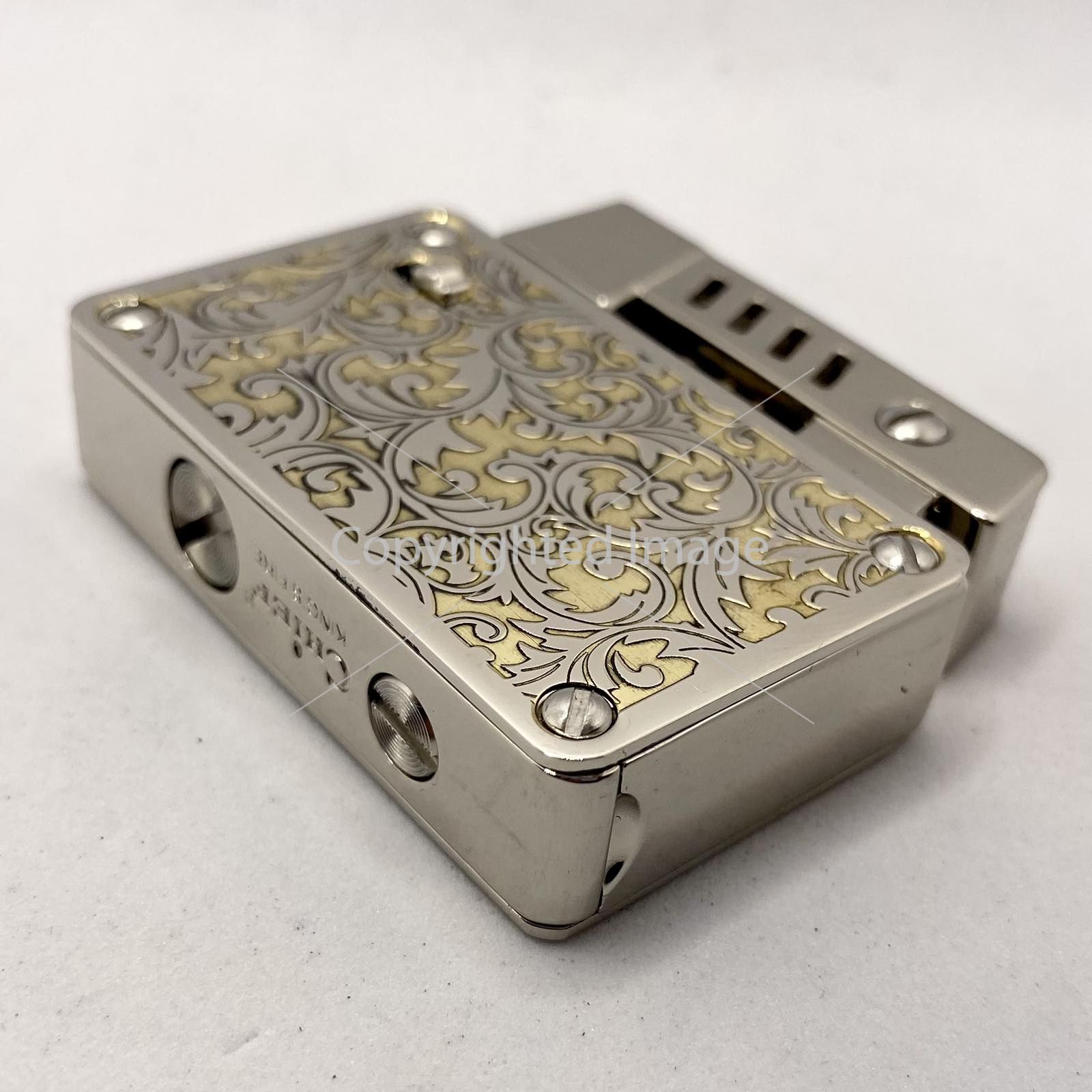 Розкішний Вигляд: Ефектне двоколірне гравіювання на лицьовій панелі (сріблястий метал + золотистий фон) перетворює запальничку на витвір мистецтва.