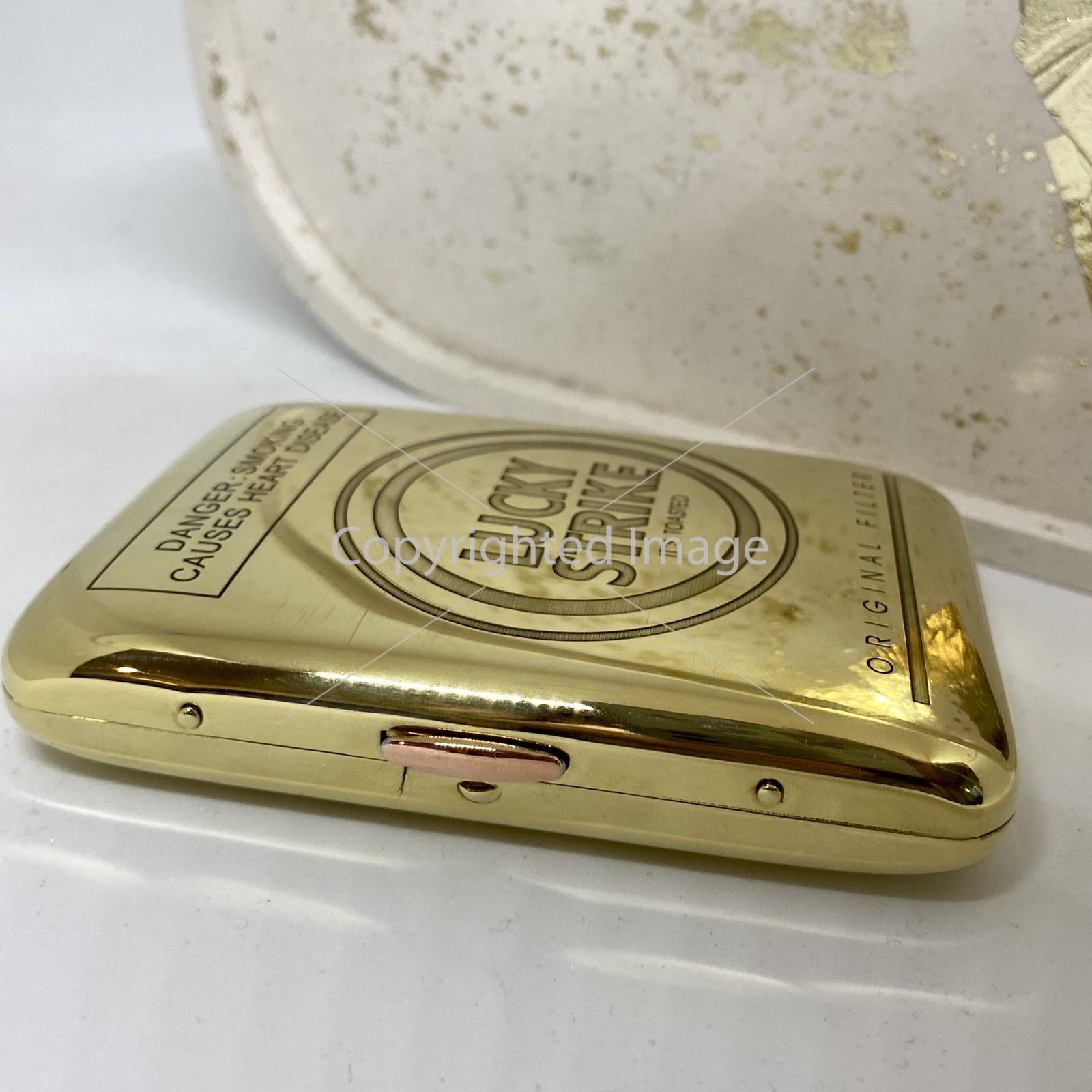 Відчуйте атмосферу золотого віку тютюнової культури. Цей портсигар — не просто коробка, це реверанс у бік легендарної епохи. Фірмове гасло "It’s Toasted" та класичне компонування елементів роблять його справжньою знахідкою для колекціонерів та естетів.