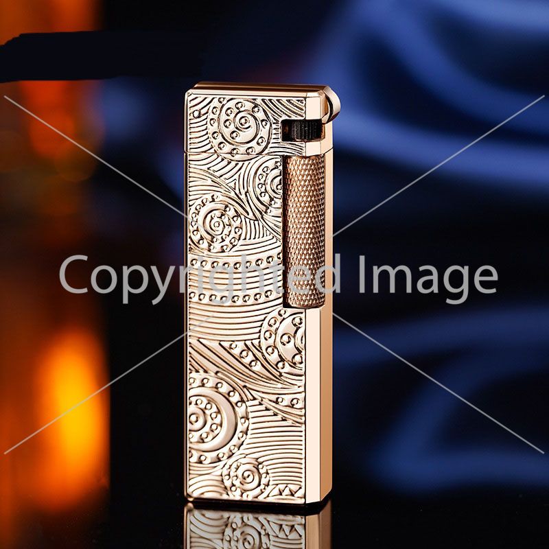 Унікальне Оздоблення: Поверхня прикрашена детальним гравіюванням у вигляді хвилястих ліній та кіл, що не тільки приваблює погляд, але й робить запальничку приємною на дотик.