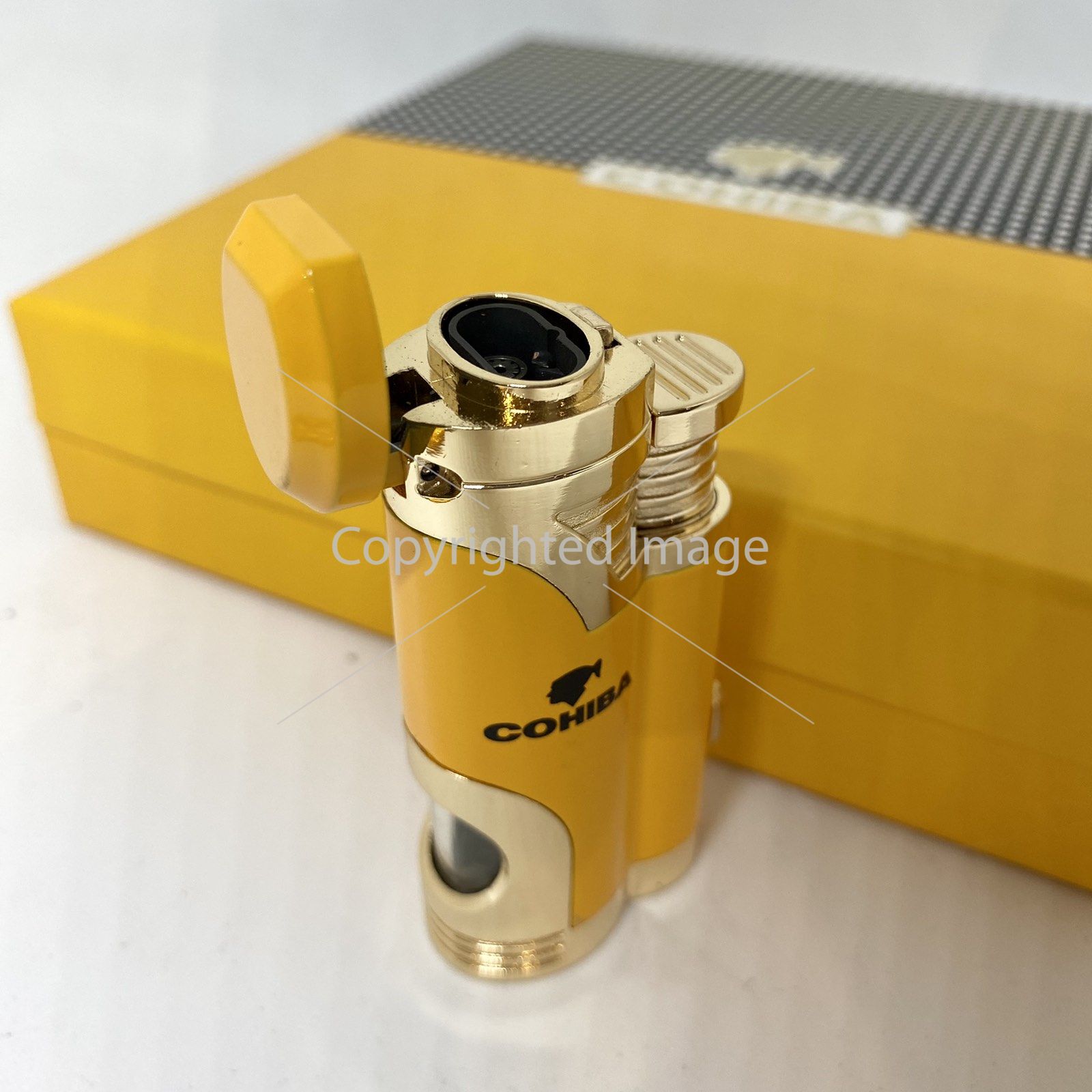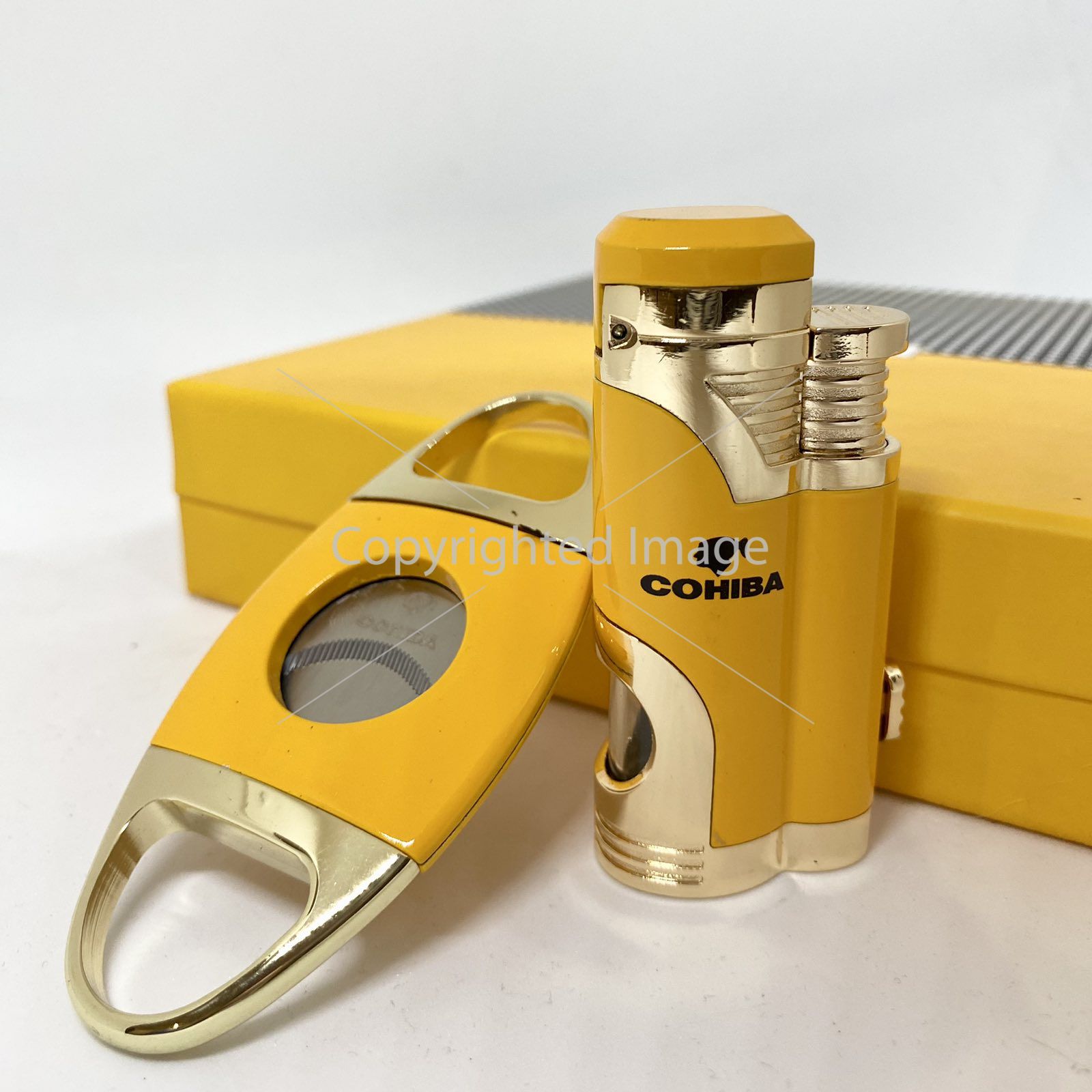 Турбо-запальничка Cohiba та гільйотина жовто-золотистого кольору у наборі