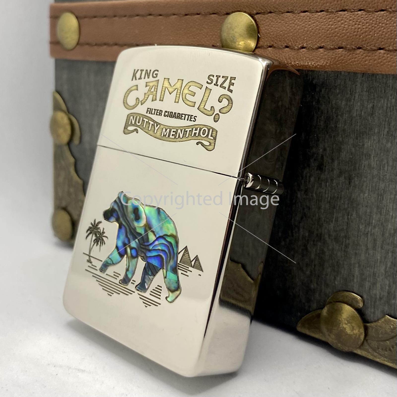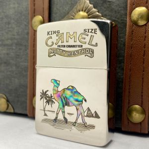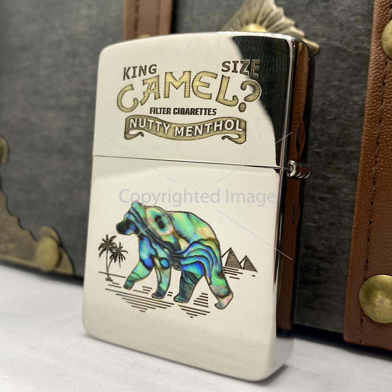 Ексклюзивний Дизайн Camel: На лицьовій стороні розміщено стильне гравіювання "KING SIZE CAMEL FILTER CIGARETTE NUTTY MENTHOL". Це данина поваги культовому дизайну, яка привертає увагу. На зворотній стороні розміщений ведмідь.