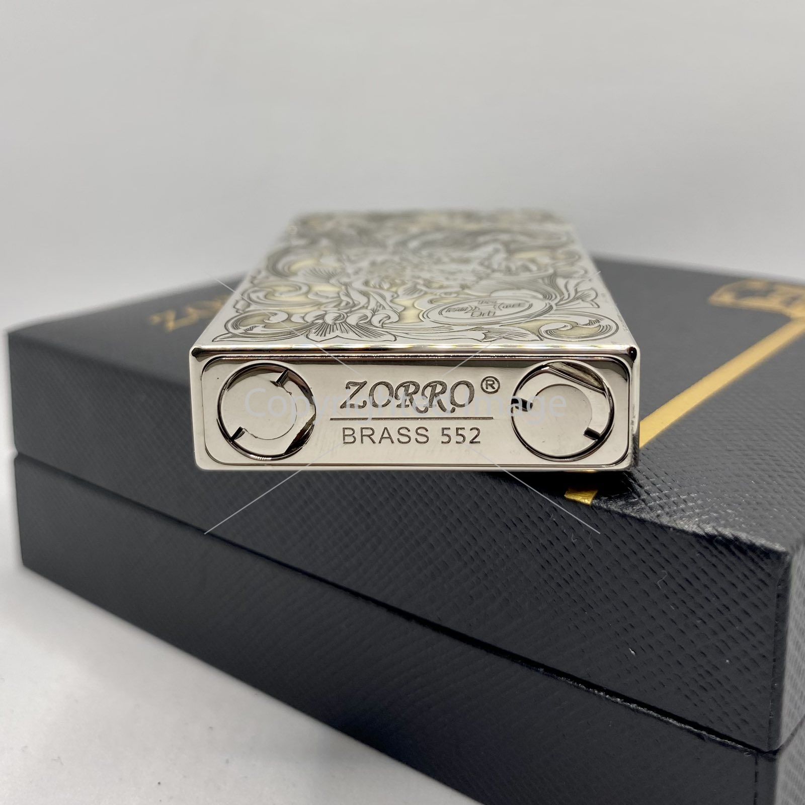 Представляємо елітну бензинову запальничку ZORRO — аксесуар, що свідчить про бездоганний смак свого власника. Ця модель поєднує класичну, перевірену часом конструкцію з розкішним, деталізованим оздобленням.