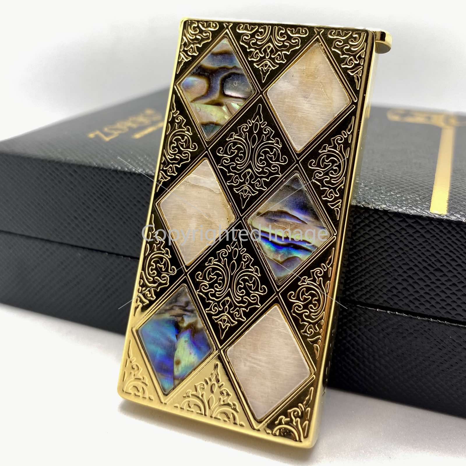 ZORRO DeLuxe: Золота Бензинова Запальничка з Інкрустацією Перламутром та Абалоном