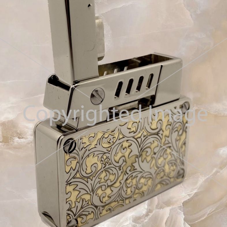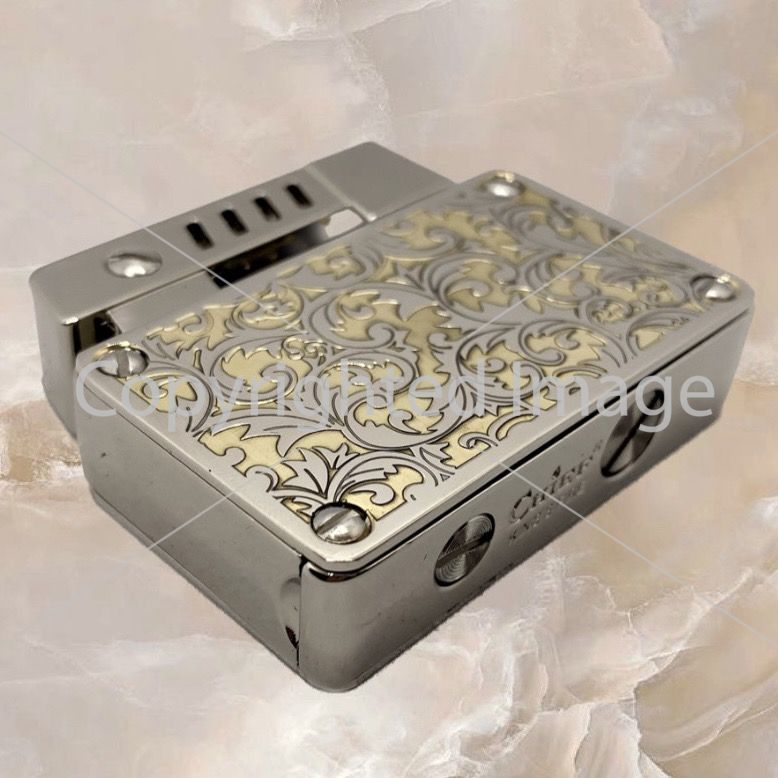 Розкішний Вигляд: Ефектне двоколірне гравіювання на лицьовій панелі (сріблястий метал + золотистий фон) перетворює запальничку на витвір мистецтва.