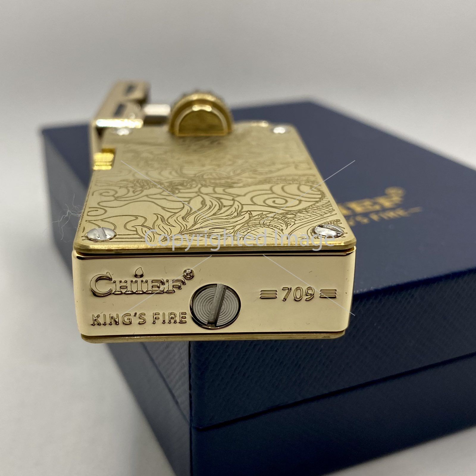 Ексклюзивна бензинова запальничка Chief із золотистим покриттям, що поєднує класичну надійність та розкішний дизайн. Ідеальний аксесуар для чоловіків, які цінують якість та статус.